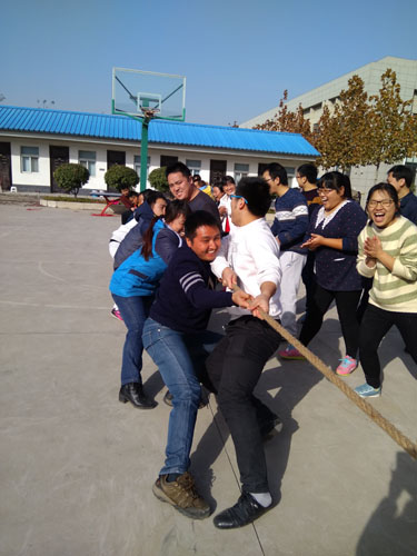 此次運動會一共設置了四個比賽項目;“四人五足”、“帶球力”、“端乒乓球”、“拔河比賽”。“四人五足”項目中參賽小組緊密配合,保證速度又要協調步伐一致,男女要協同,比賽過程中氣氛熱烈,扣人心弦,一場場精彩的對局,最終決出三組優勝團隊;“帶球接力”,全體員工參加,一共八隊(每對6人),每次進行兩隊,兩人一組(3輪接力),參加者站在起點處,兩人夾著氣球奔向終點,然后跑回起點后,第一輪的任意一人站在指定位置使用呼啦圈套住站在指定位置的第二輪的任意一人(呼啦圈套住后必須落地),第二輪/第三輪同樣如此,才能由下一輪兩人接上,用時最短的為獲勝小隊,比賽中大家大家斗智斗勇即要求速度又要求“質量”,現場掌聲不斷,笑聲不斷,大家完全沉浸在比賽之中;“端乒乓球”項目,全體員工參加,四人一組,每次進行兩組,活動開始前每輪參與人員跳繩熱身50個,完畢后由參加者站在起點單手持乒乓球拍放球跑至終點再折回,中途球落需從起點重新開始,規定時間內用時最短的勝出,比賽過程中,有些團隊有了速度卻丟了球,有些團隊球不掉,又沒了速度,最中只有賽前做好人員配備,穩中求快的小組取得了勝利,這個項目充分體現了激情重要,智慧也重要的運動精神;“拔河比賽”真正體現了團隊精神的重要性,一共設置了四個團隊,兩兩對決,最終取一名獲勝隊,拔河比賽要求全體隊員用力方向一致,步調一致,統一指揮,勁向一處使,用勁全力才能取勝,通過這個游戲大家更是體會到了團隊合作及統一目標的重要性。
